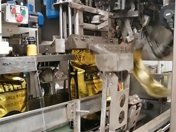 2)不合格自動剔除功能:包裝袋沒有正確地被固定到夾袋裝置上或包裝袋不符合規(guī)格,裝置即自動剔除包裝袋,信號告知稱重秤里的物料停止排放,等下一個正確的袋被正確地固定到夾袋裝置上時再充填;